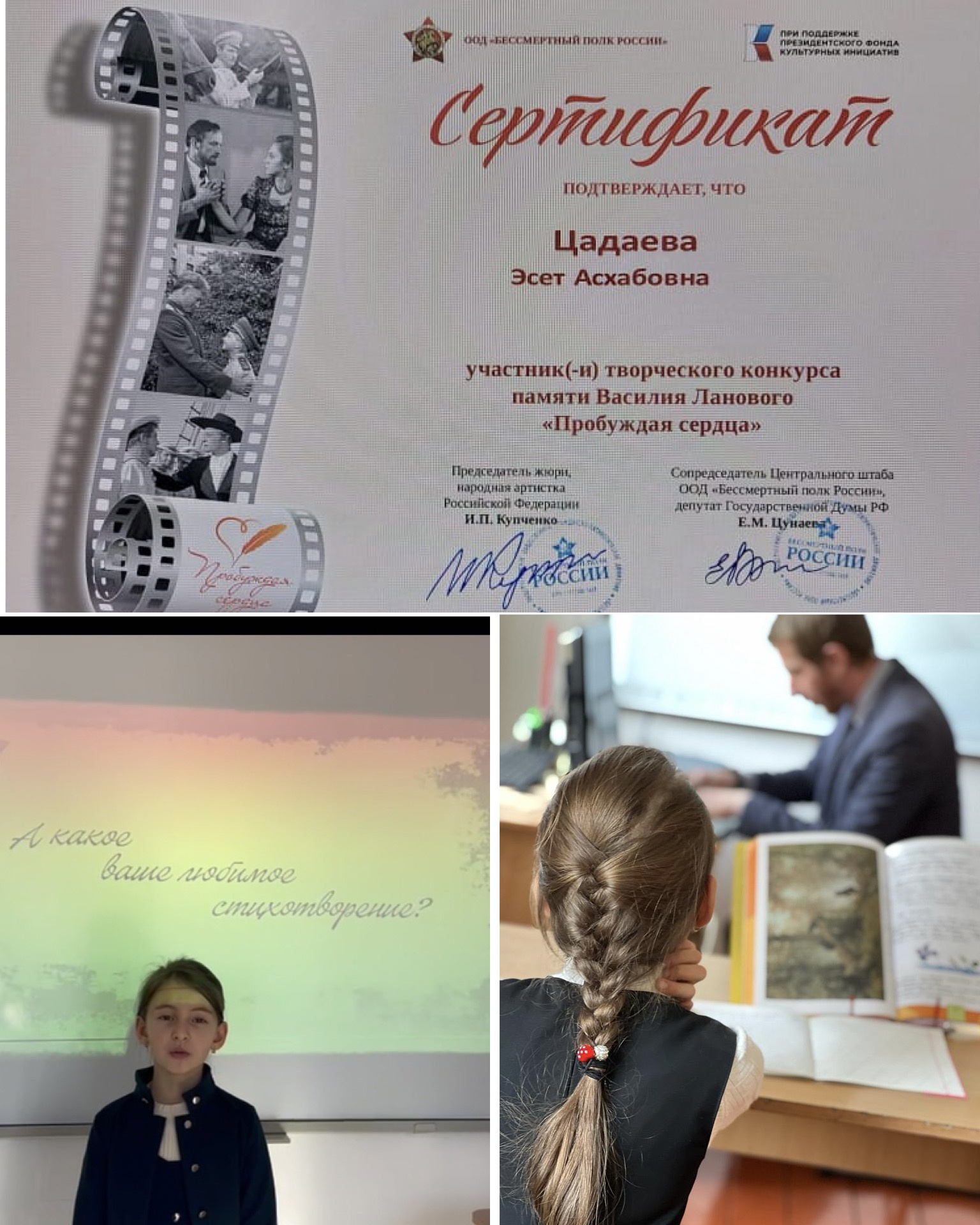Цадаева Эсет ученица 3-го класса МБОУ "Макажойская ООШ" приняла участие во Всероссийском конкурсе чтецов "Пробуждая сердца.